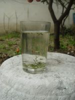 軽発酵烏龍茶を用い、まず冷開水で茶葉を浸して舒展させます。茶湯の色が悶黄色になってはいけず、淡緑色が理想的です。茶葉が水に5分間浸って舒展した後、ミキサーに入れて砕きます。緑茶を茶粉にするような概念で、この時色は一抹の翠緑を呈します。
