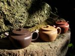この「気孔性」により、紫砂の茶碗はお茶の香りと味わいをやわらかく包み込み、全体的にまろやかで落ち着いた印象を与えます。また、香りが器に吸収されることで、徐々に茶碗自体に茶の風味が染み込み、使うほどに味わい深くなっていきます。